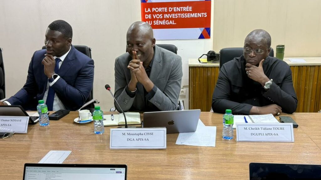 Dans le cadre de la poursuite du voyage dโรฉtude ร Dakar, la dรฉlรฉgation guinรฉenne a tenu une sรฉance dโรฉchanges avec le Directeur Gรฉnรฉral Adjoint, le Secrรฉtaire Gรฉnรฉral et les cadres de APIX S.A โ Promotion des Investissements et Grands Travaux, homologue de lโAPIP-Guinรฉe.