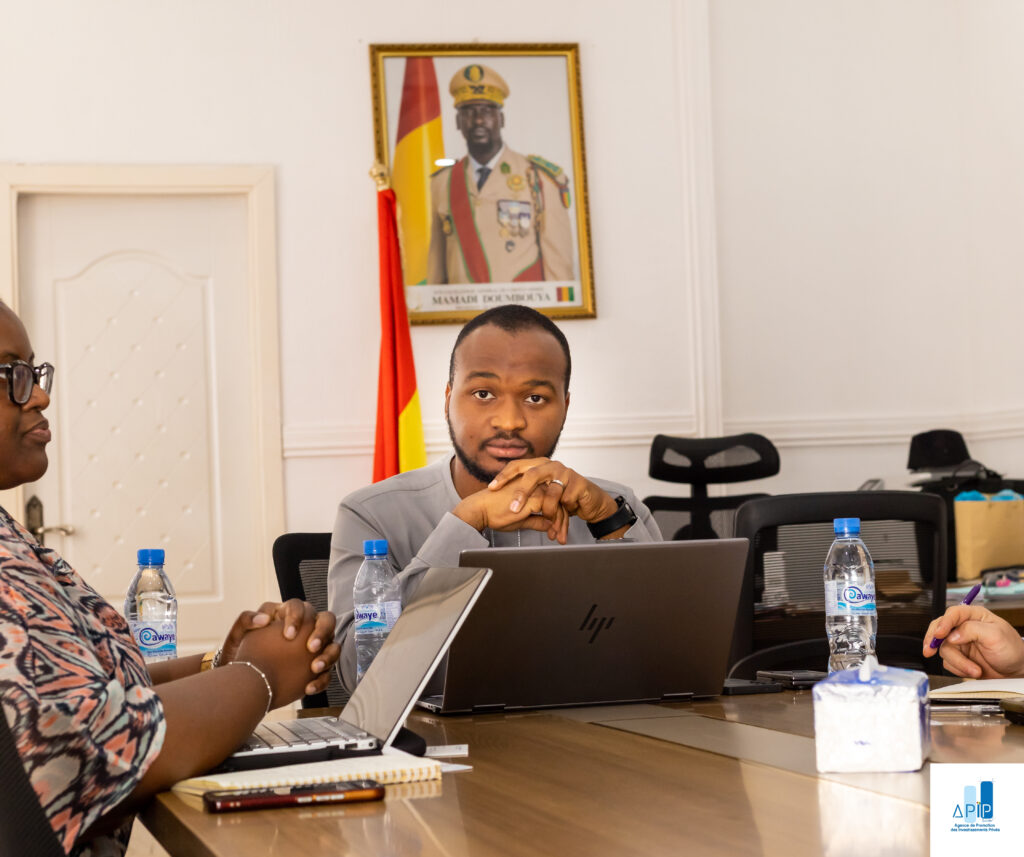 Les discussions ont portรฉ sur les ๐จ๐ฉ๐ฉ๐จ๐ซ๐ญ๐ฎ๐ง๐ข๐ญ๐ฬ๐ฌ ๐๐ ๐๐ข๐ง๐๐ง๐๐๐ฆ๐๐ง๐ญ ๐๐ฎ ๐ฌ๐๐๐ญ๐๐ฎ๐ซ ๐ฉ๐ซ๐ข๐ฏ๐ฬ ๐ ๐ฎ๐ข๐ง๐ฬ๐๐ง, en particulier les PME, avec un focus sur les secteurs ๐๐ ๐ซ๐ข๐๐จ๐ฅ๐, ๐ฬ๐ง๐๐ซ๐ ๐ฬ๐ญ๐ข๐ช๐ฎ๐, ๐๐ข๐ง๐๐ง๐๐ข๐๐ซ ๐๐ญ ๐๐๐ฌ ๐ฌ๐๐ซ๐ฏ๐ข๐๐๐ฌ, notamment dans les zones rurales. La rencontre a permis de prรฉsenter le rรดle de lโAPIP-Guinรฉe en tant qu’acteur central de la ๐ฉ๐ซ๐จ๐ฆ๐จ๐ญ๐ข๐จ๐ง ๐๐๐ฌ ๐ข๐ง๐ฏ๐๐ฌ๐ญ๐ข๐ฌ๐ฌ๐๐ฆ๐๐ง๐ญ๐ฌ en Guinรฉe, de la ๐๐ซ๐ฬ๐๐ญ๐ข๐จ๐ง ๐’๐๐ง๐ญ๐ซ๐๐ฉ๐ซ๐ข๐ฌ๐ a travers son guichet unique et de lโ ๐๐๐๐จ๐ฆ๐ฉ๐๐ ๐ง๐๐ฆ๐๐ง๐ญ ๐๐๐ฌ ๐๐ง๐ญ๐ซ๐๐ฉ๐ซ๐ข๐ฌ๐๐ฌ.